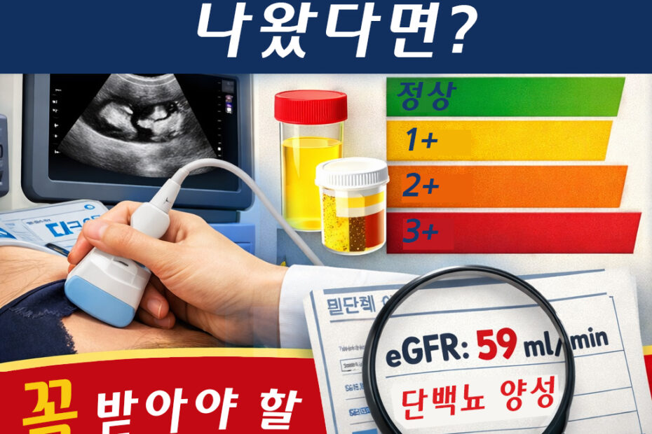 건강검진 결과지에서 사구체여과율(eGFR) 이 59 mL/min/1.73㎡로 나와 걱정하시는 분들이 많습니다. 결론부터 말씀드리면, 한 번의 수치만으로 콩팥병을 확정할 수는 없지만, 반드시 추가 평가가 필요한 단계입니다. 이… 더 보기 »건강검진에서 사구체여과율 59가 나왔다면? 꼭 받아야 할 추가 검사 정리