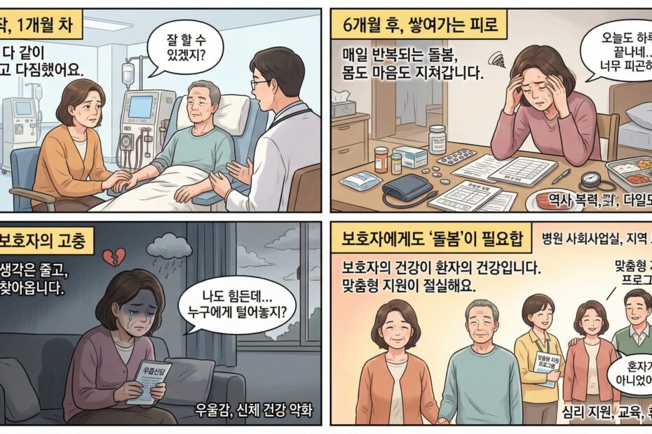 신장 기능이 저하되어 유지 투석(Maintenance Dialysis)을 시작하는 것은 환자 본인에게도 거대한 변화지만, 곁을 지키는 배우자와 가족 등 비공식 보호자(Informal Caregiver)의 삶에도 지각변동을 일으킵니다.… 더 보기 »가족의 삶을 바꾸는 투석, 보호자의 ‘마음 건강’은 안녕한가요?