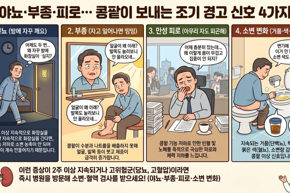 소변에 거품이 보인다고 해서 반드시 콩팥 질환을 의미하는 것은 아닙니다. 하지만 특정한 형태의 거품은 단백뇨의 신호일 수 있어 주의가 필요합니다. 즉, 거품의 “모양과 지속 시간”이… 더 보기 »소변에 거품이 보이면 정말 콩팥이 나쁜 걸까? 거품뇨 오해와 실제 위험 신호 구분