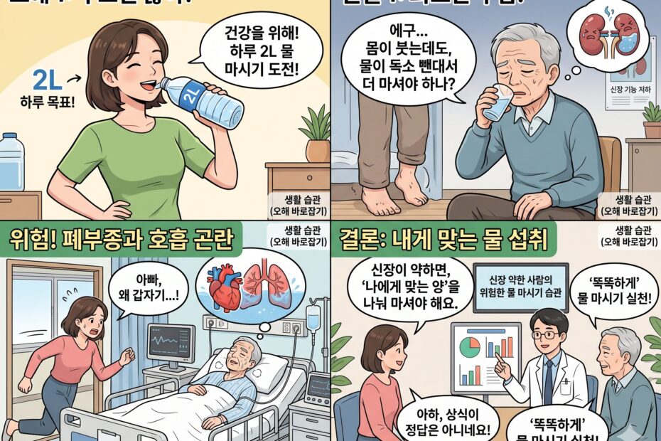물 많이 마시면 무조건 좋다? 신장 기능 약한 사람이 절대 하면 안 되는 위험한 물 마시기 습관
