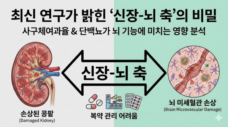 1. 왜 콩팥병이 뇌 기능과 연결될까? 만성콩팥병은 단순히 콩팥만의 문제가 아닙니다. 최근 연구들은 ‘신장–뇌 축’이라는 개념을 통해, 콩팥 기능 저하가 인지기능(기억력, 주의력, 처리속도, 집행기능)에 영향을 줄 수 있음을 보여주고 있습니다. 특히 다음 두 지표가 중요하게 거론됩니다. 사구체여과율 감소 단백뇨(요 단백-크레아티닌 비 증가) 콩팥 기능이 떨어질수록 전신 염증, 혈관 손상, 요독 물질 축적이 발생하고, 이는 뇌의 … 만성콩팥병이 인지기능을 떨어뜨린다? 신장–뇌 축(Kidney–Brain Axis)의 경고 계속 읽기