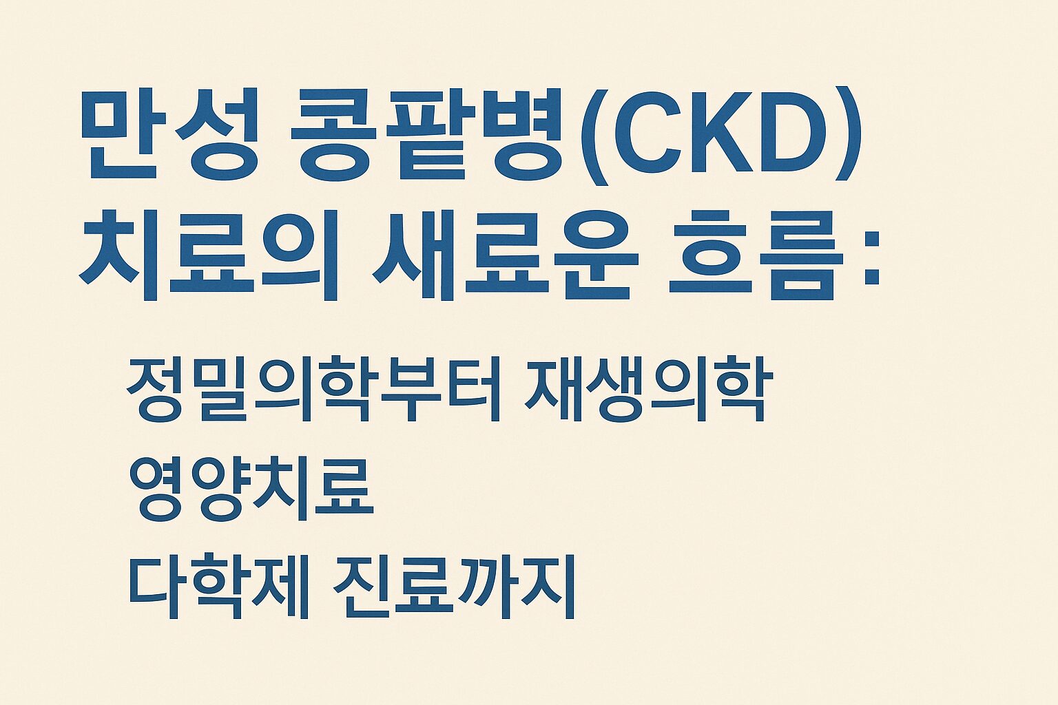 오늘 글에서는 최신 리뷰 논문에서 소개된 네 가지 핵심 축을 중심으로, 미래 CKD 치료 전략을 쉽게 정리합니다.