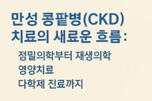 만성콩팥병(Chronic Kidney Disease, CKD)은 전 세계 8억 명 이상이 겪는 대표적 만성질환입니다. 고령화, 당뇨병 증가, 고혈압 등으로 환자는 계속 늘어나지만, 현재의 치료는 대부분 “속도를 늦추는 것”에 머무릅니다. 즉, 콩팥 기능 감소를 되돌리기보다는 악화를 늦추고 증상을 관리하는 데 집중해 왔습니다. 하지만 최근 연구와 기술 발전은 CKD 관리 패러다임을 ‘반응적 치료 → 선제적·개인화된 치료’로 전환시키고 있습니다. 오늘 … 만성콩팥병(CKD) 치료의 새로운 흐름: 정밀의학부터 재생의학, 영양치료, 다학제 진료까지 계속 읽기