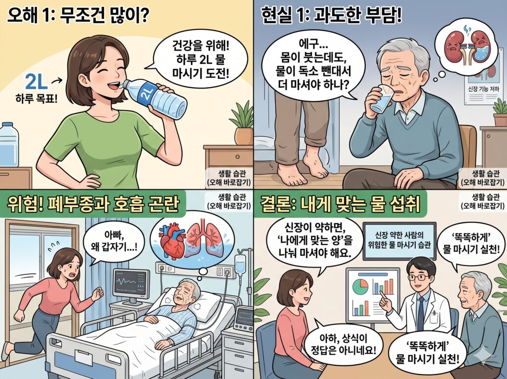 ‘하루 물 2리터’라는 공식에 갇혀 당신의 소중한 신장을 혹사시키고 있지는 않나요?