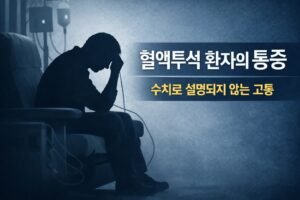 왜 혈액투석 환자의 통증은 여전히 ‘주변 문제’로 남아 있을까 혈액투석 진료는 오랫동안 의료진 중심의 생화학적 지표를 기준으로 발전해 왔습니다. Kt/V, 인(phosphate), 헤모글로빈, 전해질 수치는 정확히 관리되지만, 정작 환자가 매일 겪는 통증·피로·불안은 진료의 중심에서 밀려나 있었습니다. 그러나 현실에서 환자의 하루를 가장 크게 좌우하는 것은 검사 수치가 아니라 관절이 쑤시는 통증 다리가 저려 잠들기 어려운 밤 투석 … 혈액투석 환자의 만성 통증, 수치로 설명되지 않는 고통을 마주해야 할 때 계속 읽기