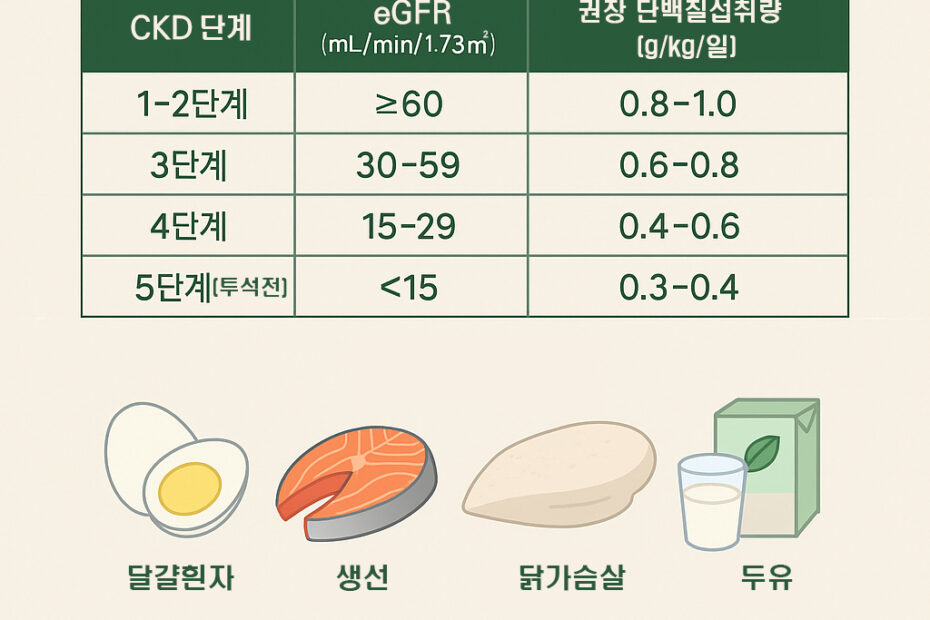 단백뇨, 단백질이 새고 있다는 경고 단백뇨는 콩팥의 여과막(사구체)이 손상되어 단백질이 소변으로 빠져나오는 상태입니다.단백질은 우리 몸에 꼭 필요한 영양소이지만, 단백뇨가 많을수록 콩팥은 더 큰 부담을 받습니다.… 더 보기 »단백뇨 환자를 위한 단백질 섭취 가이드 – CKD 단계별 식단 조절법
