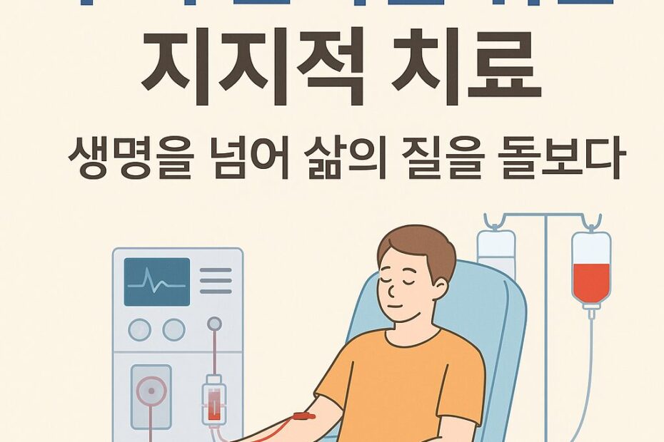 1. 투석 환자의 삶, 치료만으로 충분할까? 혈액투석을 받는다는 것은 단순히 기계로 피를 정화하는 행위가 아니다. 매주 세 번, 평생 지속되는 치료 속에서 환자들은 피로감, 우울,… 더 보기 »투석 환자를 위한 지지적 치료(Supportive Care) — 생명을 넘어 삶의 질을 돌보다