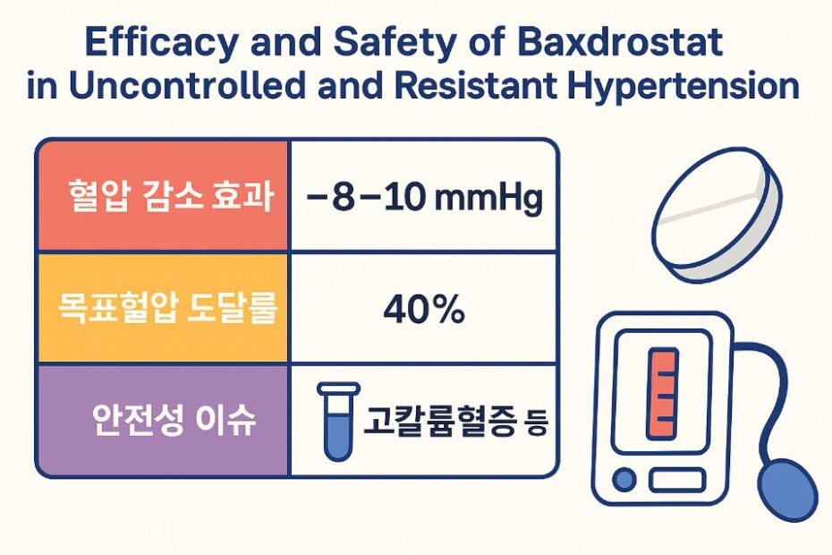 1. 왜 새로운 치료제가 필요한가? 고혈압 환자 중 일부는 두 가지 이상 약물을 복용해도 혈압이 잘 조절되지 않는 ‘조절되지 않는 고혈압(uncontrolled hypertension)’ 또는 세 가지… 더 보기 »바크드로스타트(Baxdrostat), 조절되지 않는 고혈압의 새로운 해법
