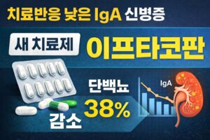 IgA 신병증(IgA nephropathy)은 전 세계에서 가장 흔한 원발성 사구체신염입니다. 특히 한국·중국·일본 등 동아시아 지역에서는 발생률이 높고, 콩팥기능 저하 속도도 빠른 것으로 알려져 있습니다. 연구에 따르면 지속적인 단백뇨가 1 g/day 이상이면 10~20년 이내 최대 50%가 말기콩팥병으로 진행할 수 있습니다 따라서 최근 가이드라인(KDIGO 2025)은 “단백뇨를 0.5 g/day 이하, 가능하면 0.3 g/day 이하로 낮추는 것”을 치료의 핵심 목표로 … IgA 신병증, 왜 동아시아에서 더 위험할까? 계속 읽기