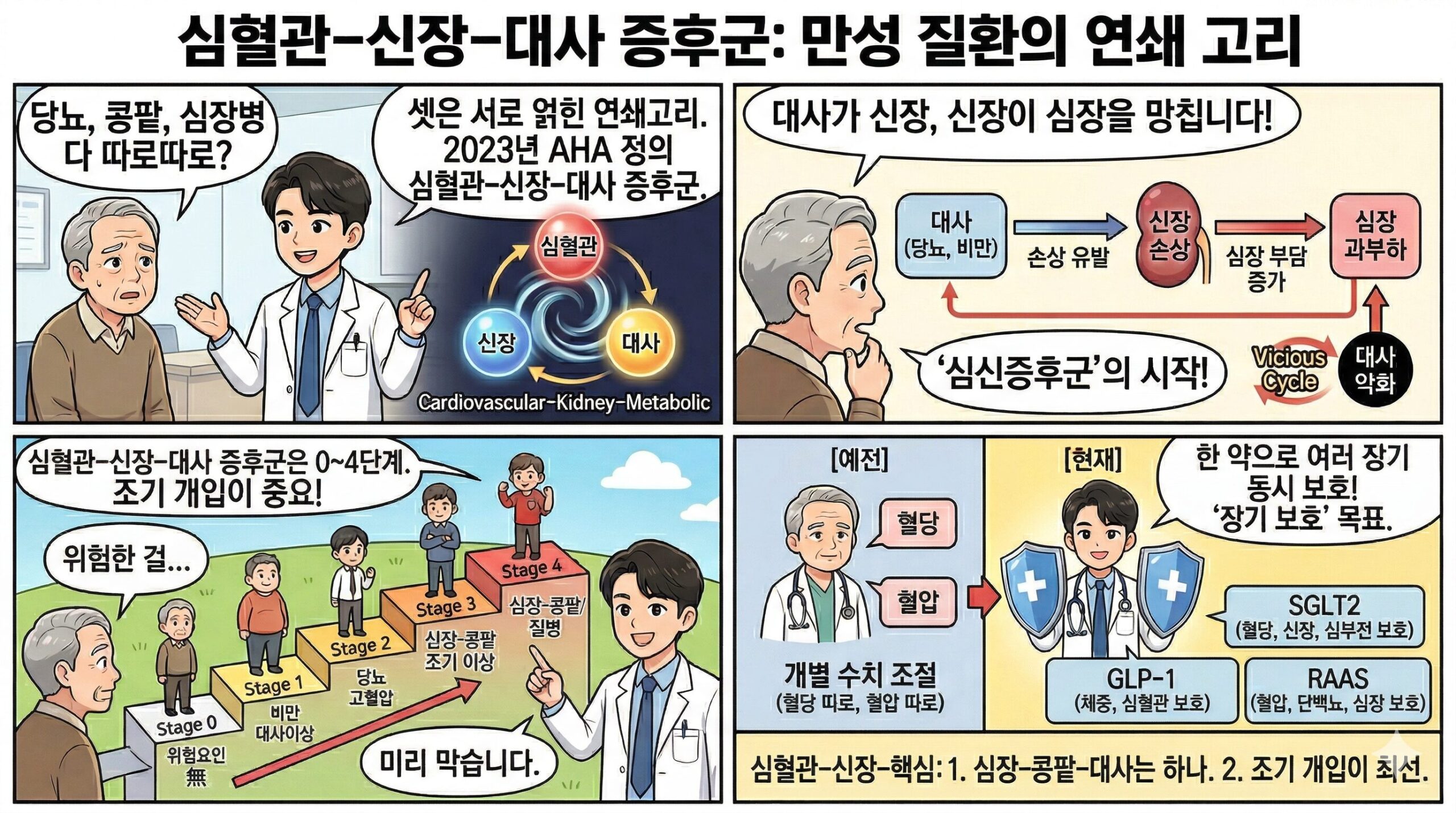 CKM 중후군이란 무엇인가 최근 의료계에서 중요한 변화 중 하나는 질환을 “따로 보지 않는다”는 것입니다. CKM 중후군(Cardiovascular-Kidney-Metabolic syndrome)은심장질환, 만성콩팥병, 그리고 당뇨·비만과…